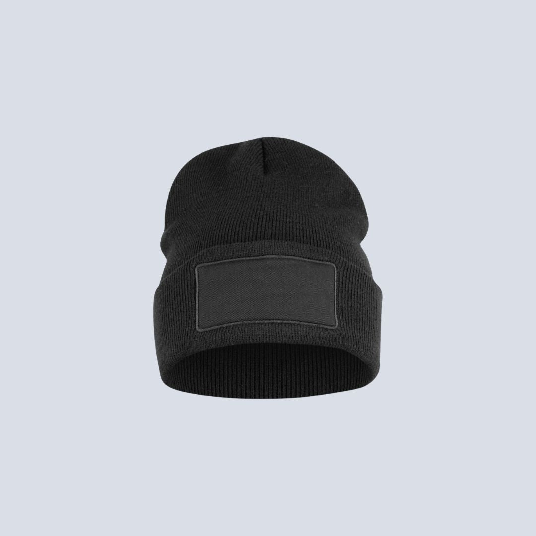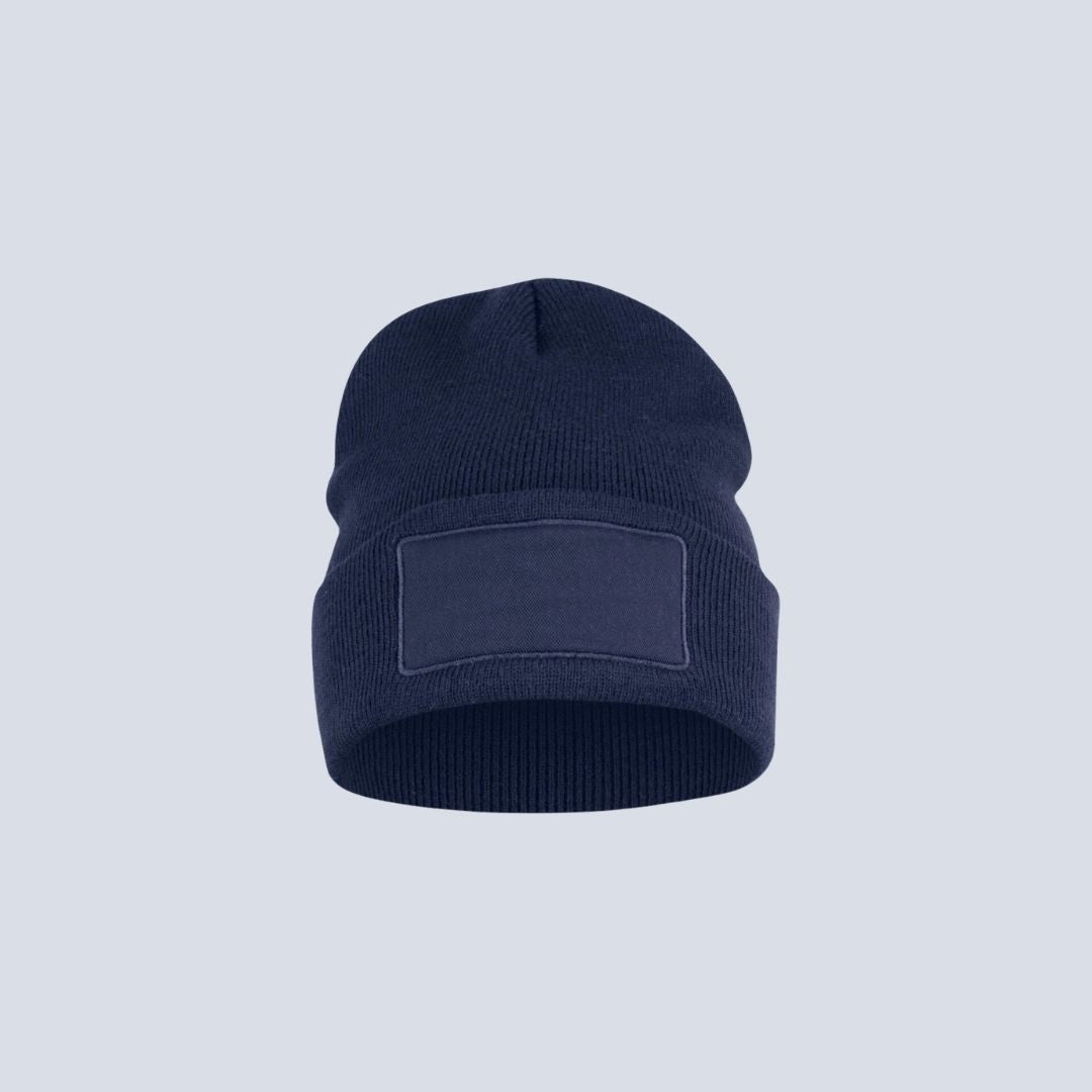 Klassische Strickmütze mit Patch auf der Vorderseite zur einfachen Individualisierung. Die Mütze verfügt über einen umgeschlagenen Rand für optimalen Tragekomfort.
