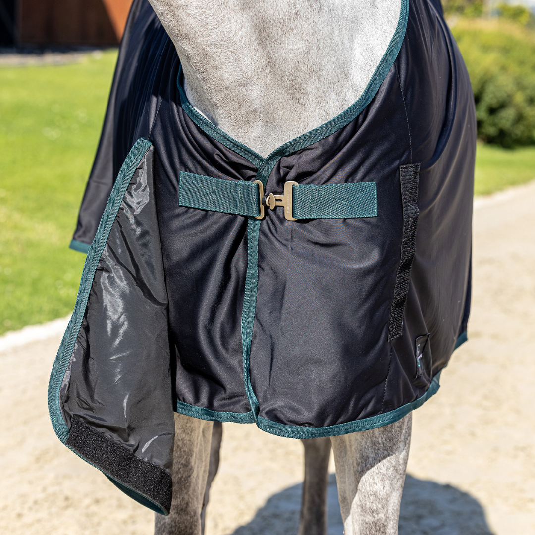 Diese Werbedecke ist darauf ausgelegt, Eindruck zu machen. Sie verfügt über einen schimmernden Außenstoff und ein weiches Fleecefutter für Komfort und Stil. Die vordere Klappe ist auf einer Seite fixiert und auf der anderen Seite mit Klettverschluss versehen – ideal für eine Stickerei. Abgerundet wird die Decke durch einen klassischen T-Verschluss an der Vorderseite, der Funktionalität mit auffälliger Optik vereint.