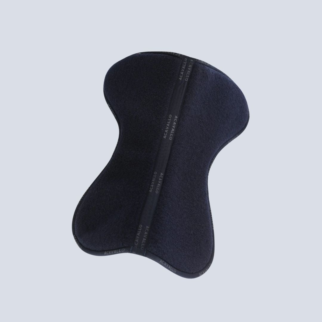 Le tapis en mousse à mémoire de forme Acavallo Close Contact avec laine vierge combine les propriétés d'absorption des chocs de la mousse à mémoire de forme avec une doublure en laine vierge et une forme conique qui garantit un contact profond du tapis avec le dos du cheval.