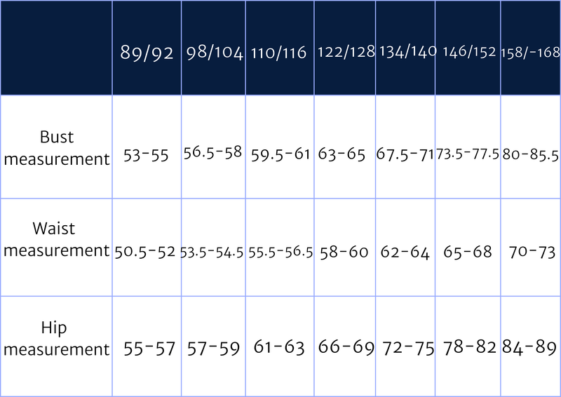 Tableau des tailles