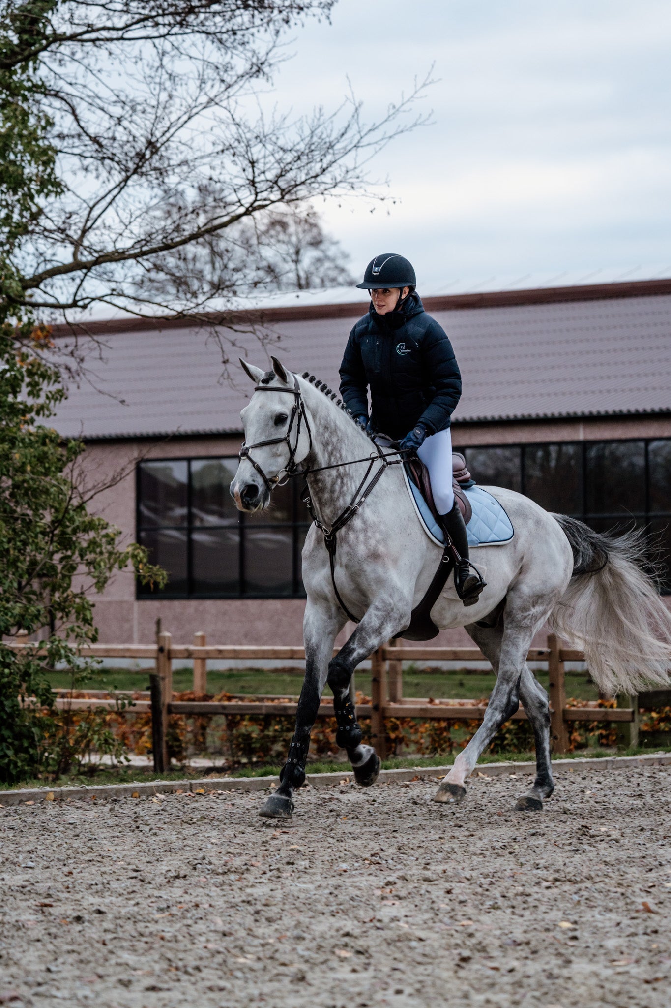 Le cuir est fini avec des coutures de couleur crème et les boucles sont de couleur argent. Ce bridon n'inclut pas les rênes. Les rênes peuvent être achetées avec la bride dans un ensemble. Veuillez ne pas oublier de spécifier la couleur désirée pour le bridon et les rênes.