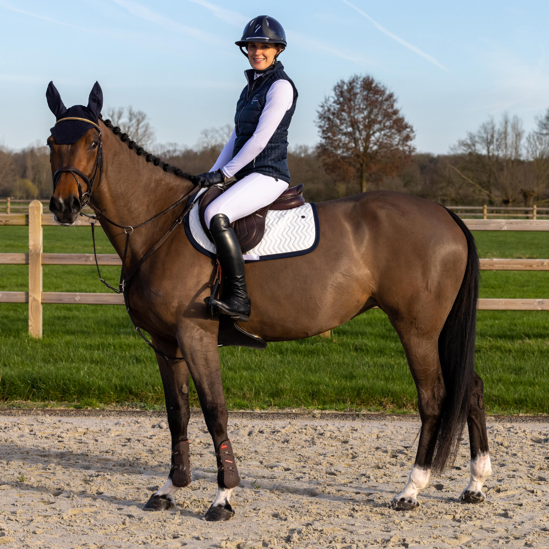 Gestion avancée de la transpiration : Conçu pour absorber efficacement la transpiration sans exacerber la transpiration, notre tapis de selle garde votre cheval confortable et au sec à chaque sortie.