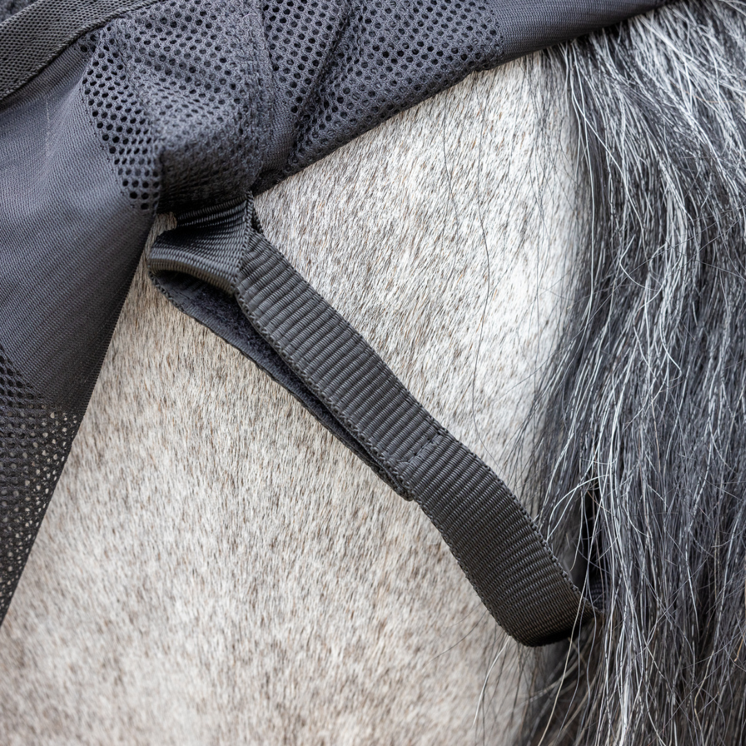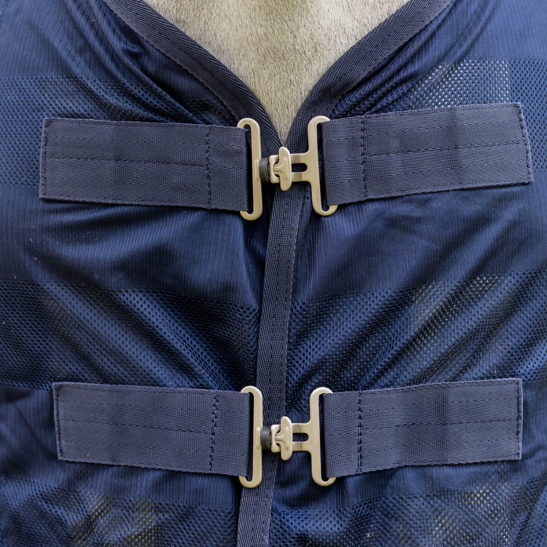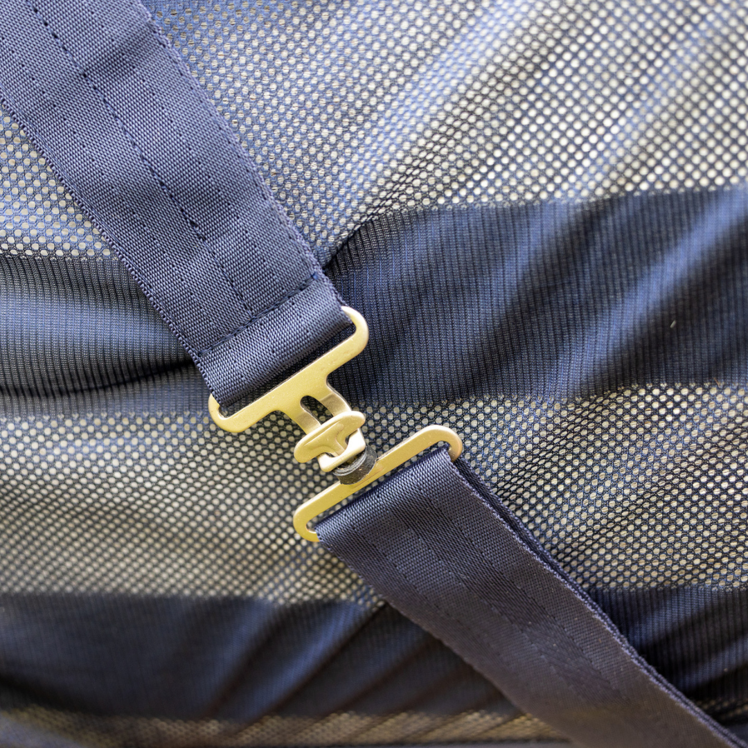 Het deken past goed rond de nek en biedt extra comfort op de schoft dankzij een zachte voering. Daarnaast is de deken voorzien van een eenvoudige dekensluiting en vaste buikriemen. Het afneembare staartkoord zorgt ervoor dat de deken netjes op zijn plaats blijft.