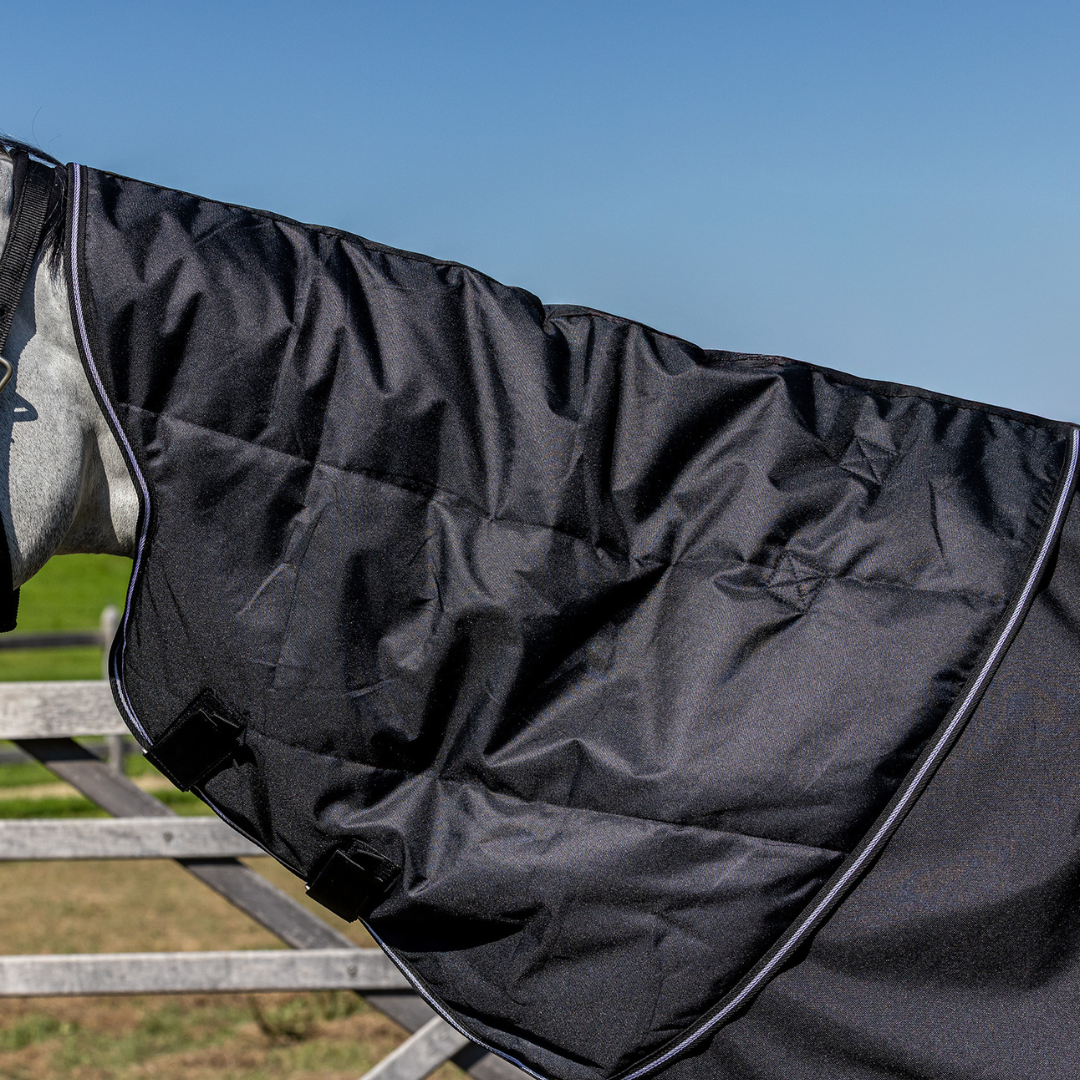 Onze nieuwe afneembare halsbeschermer combineert duurzaamheid en functionaliteit om je paard de beste bescherming en comfort te bieden. De sterke ripstop-stof maakt hem zeer slijtvast, terwijl de ademende en vochtafvoerende eigenschappen zorgen voor een optimaal klimaat rond de hals. Dankzij de glansversterkende voering blijft de vacht van je paard glad en gezond, terwijl de antibacteriële en antistatische functies extra hygiëne en comfort bieden.