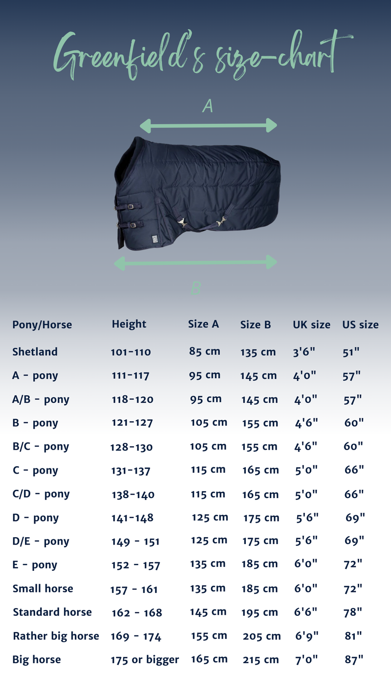 Voor een veilige en nauwsluitende pasvorm is de staldeken voorzien van vaste buiksingels met T-gespen, evenals twee T-gespen op de borst. Het wasbare bilkoord is afneembaar, wat het onderhoud eenvoudig en hygiënisch maakt. Bovendien beschikt de deken over een bevestiging voor een onderdeken, zodat je gemakkelijk extra warmte kunt toevoegen wanneer dat nodig is.