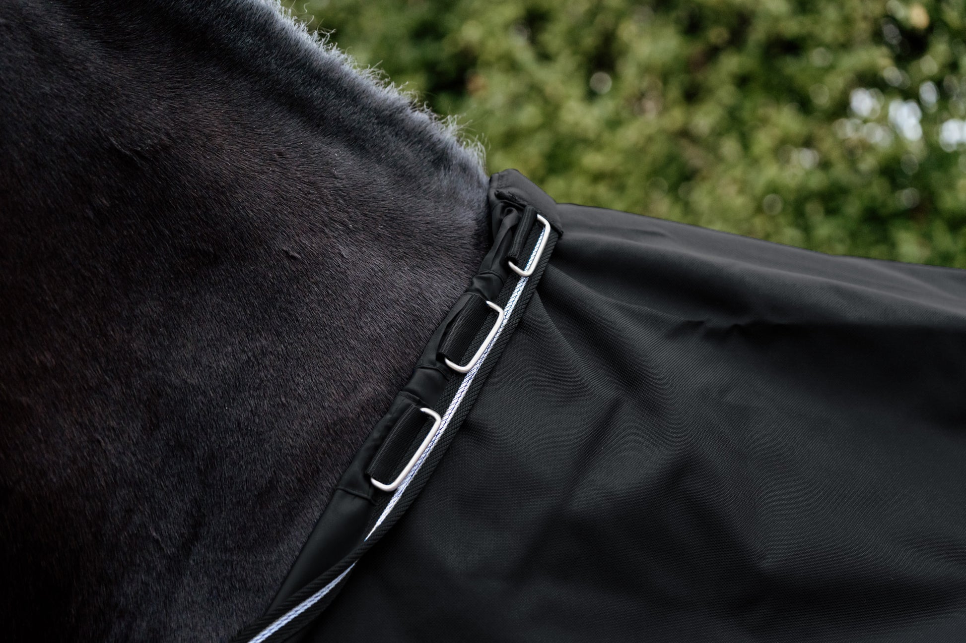 Onze nieuwe afneembare halsbeschermer combineert duurzaamheid en functionaliteit om je paard de beste bescherming en comfort te bieden. De sterke ripstop-stof maakt hem zeer slijtvast, terwijl de ademende en vochtafvoerende eigenschappen zorgen voor een optimaal klimaat rond de hals. Dankzij de glansversterkende voering blijft de vacht van je paard glad en gezond, terwijl de antibacteriële en antistatische functies extra hygiëne en comfort bieden.