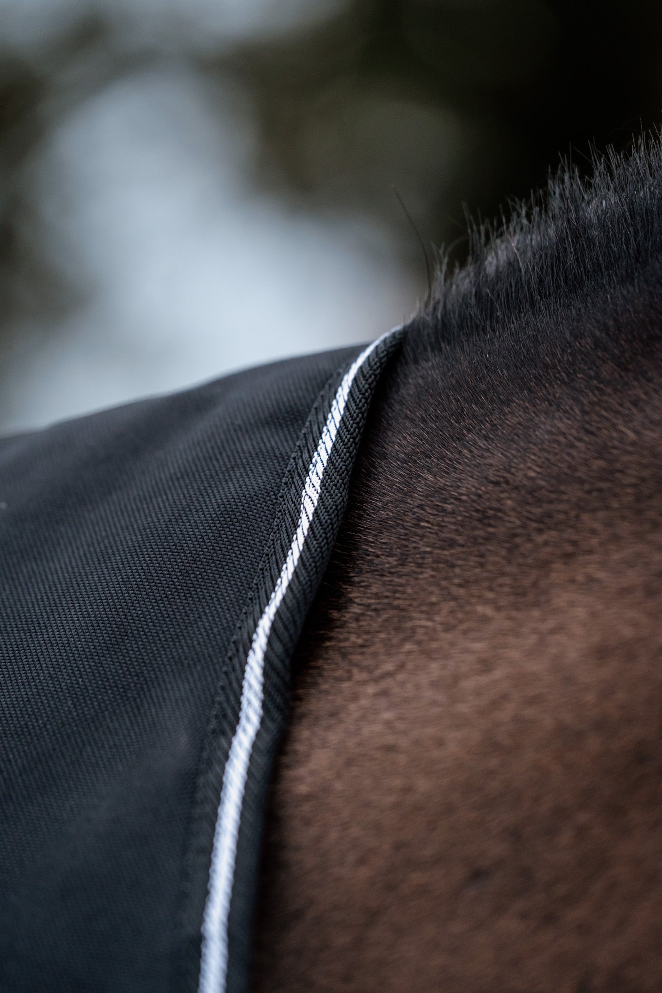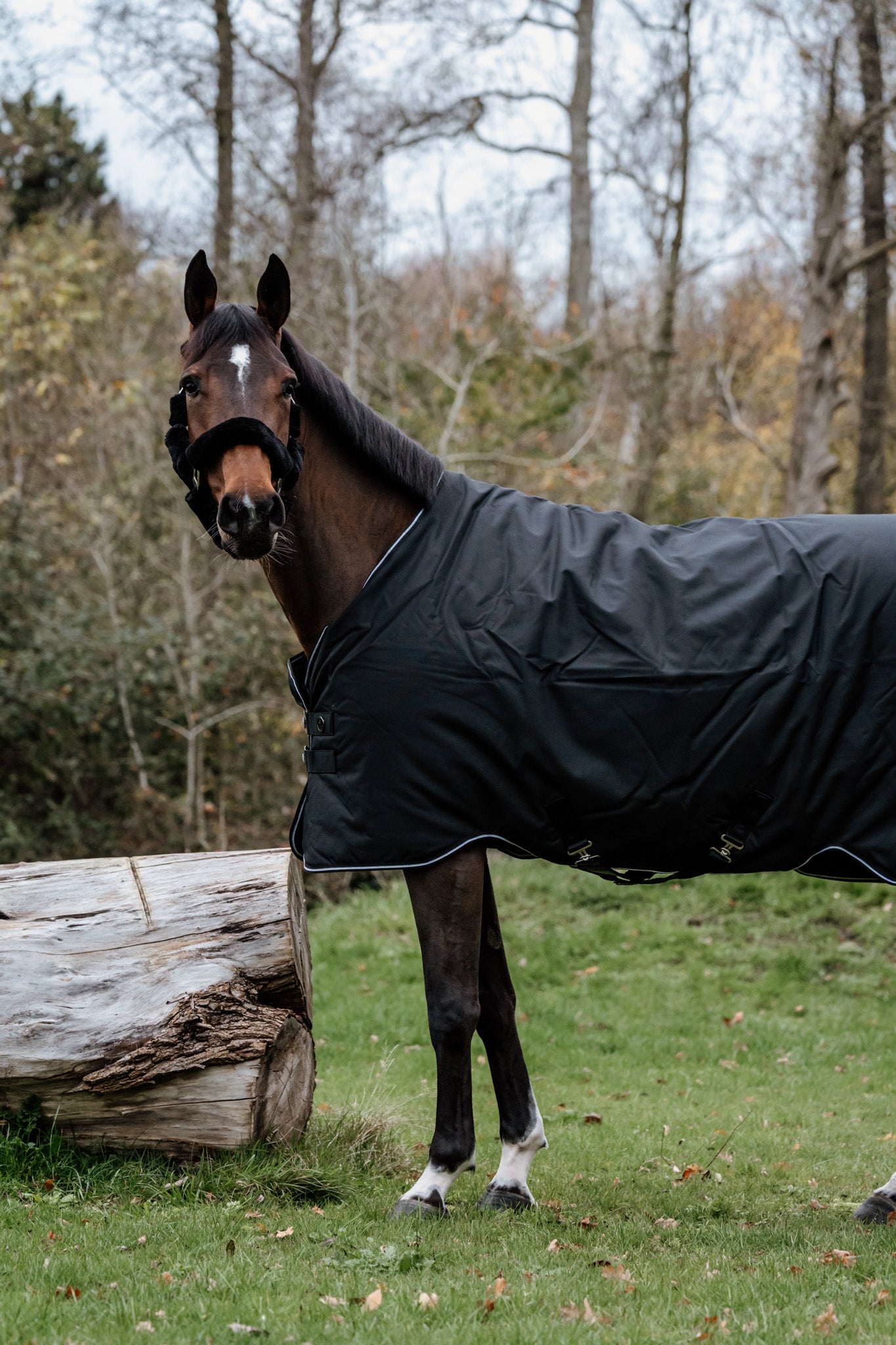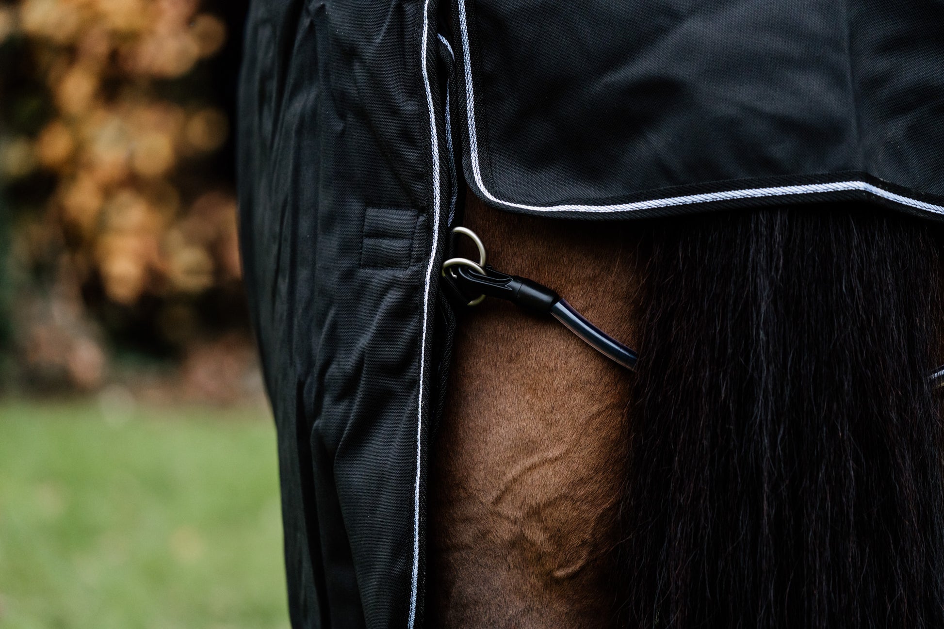 Voor een veilige en nauwsluitende pasvorm is het buitendeken uitgerust met vaste buiksingels met T-gespen en twee T-gespen op de borst. Het afneembare, wasbare staartkoord maakt het onderhoud eenvoudig en hygiënisch. Daarnaast is de deken voorzien van een bevestiging voor een onderdeken en een afneembare halsbeschermer, zodat je gemakkelijk extra warmte kunt toevoegen wanneer dat nodig is.