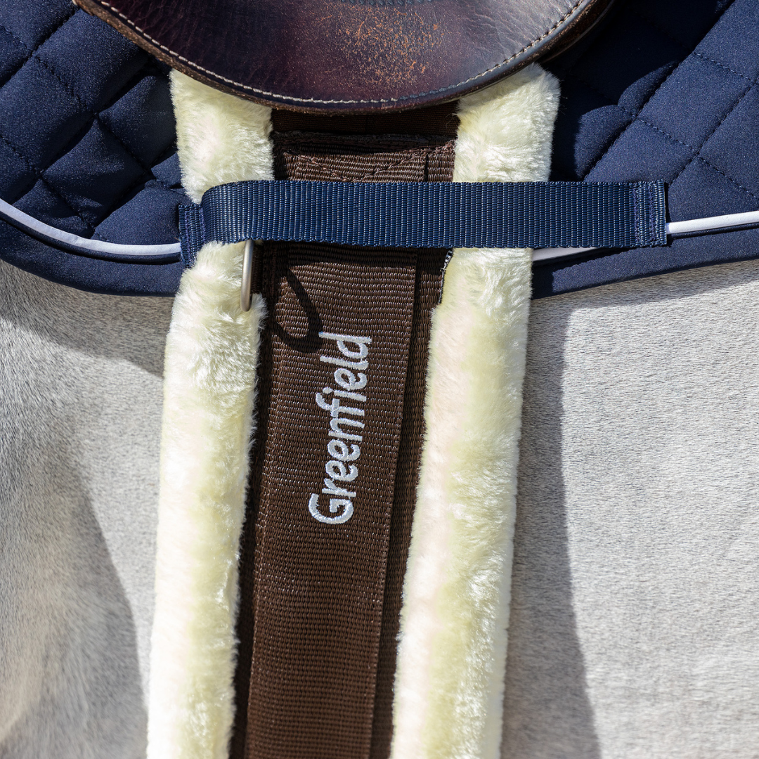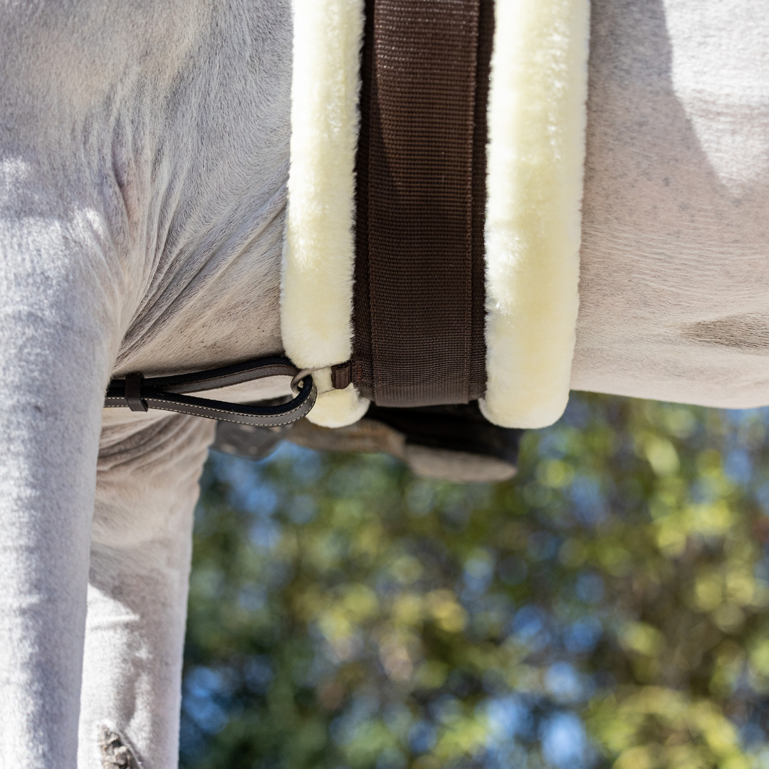 De singel met wol is gevoerd met nylon. Daardoor is de singel flexibel, licht & comfortabel voor het paard. De singel is uitgerust met 3 ringen om hulpteugels aan te bevestigen.
