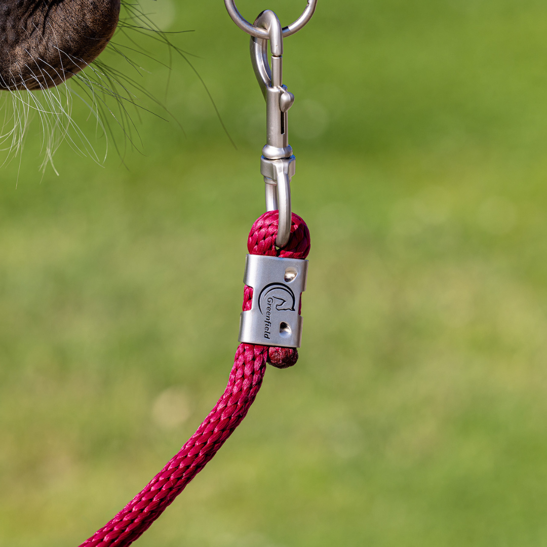 This lead rope is equipped with a sturdy silver clasp, finished with the Greenfield logo. It is made from polypropylene – a lightweight, strong, and weather-resistant synthetic rope. A durable choice for any horse owner!